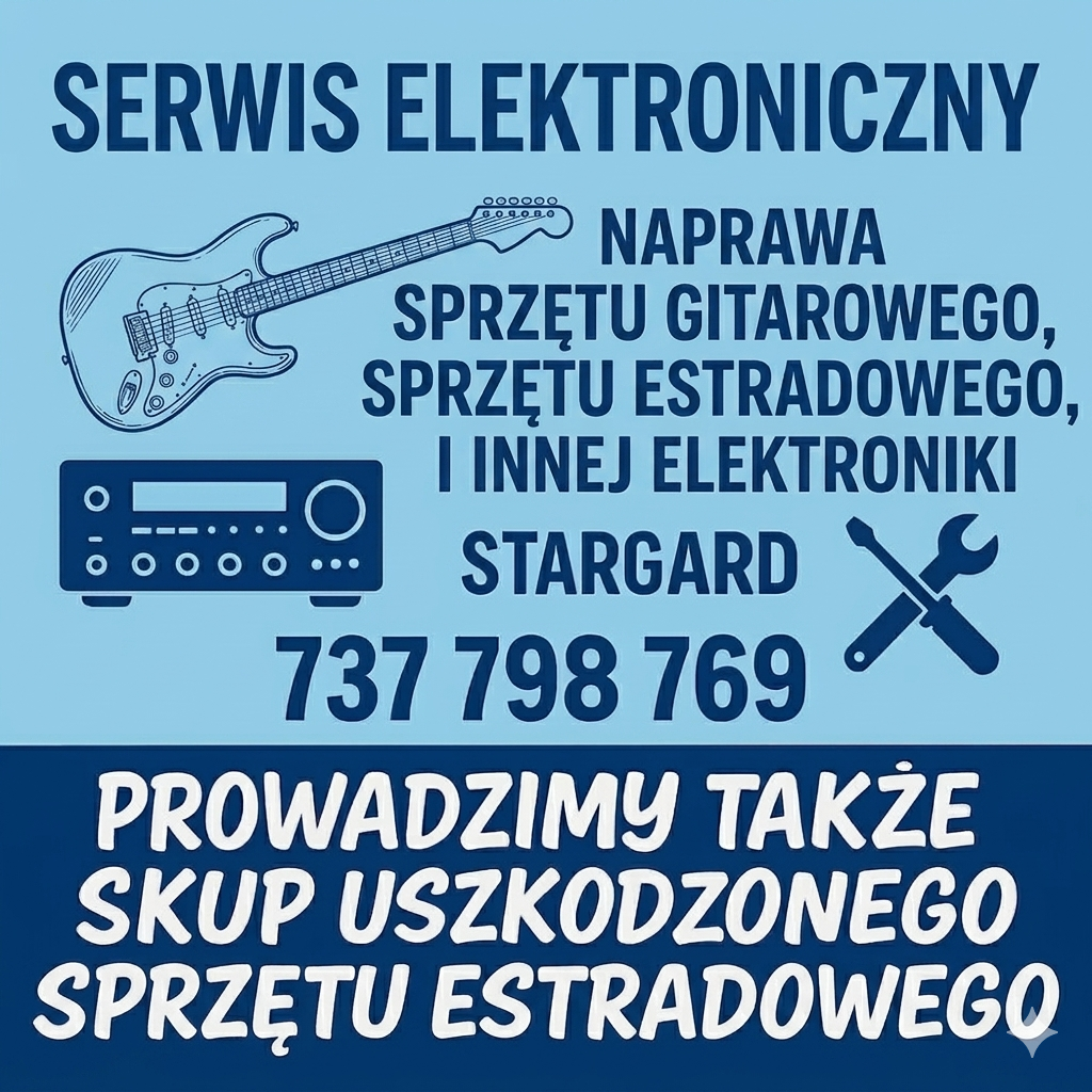Zajmujemy się profesjonalną naprawą i konserwacją szerokiego zakresu urządzeń elektronicznych – od gitar i instrumentów po sprzęt audio i muzyczny. Oferujemy szybką diagnostykę, rzetelne usługi serwisowe oraz fachowe doradztwo. Naprawiamy sprzęt wszystkich popularnych marek, wykorzystując wysokiej jakości części zamienne. Gwarantujemy solidność, terminowość i indywidualne podejście do każdego zlecenia. Również skupujemy uszkodzony sprzęt audio typu amplituner, wzmacniacz itp.